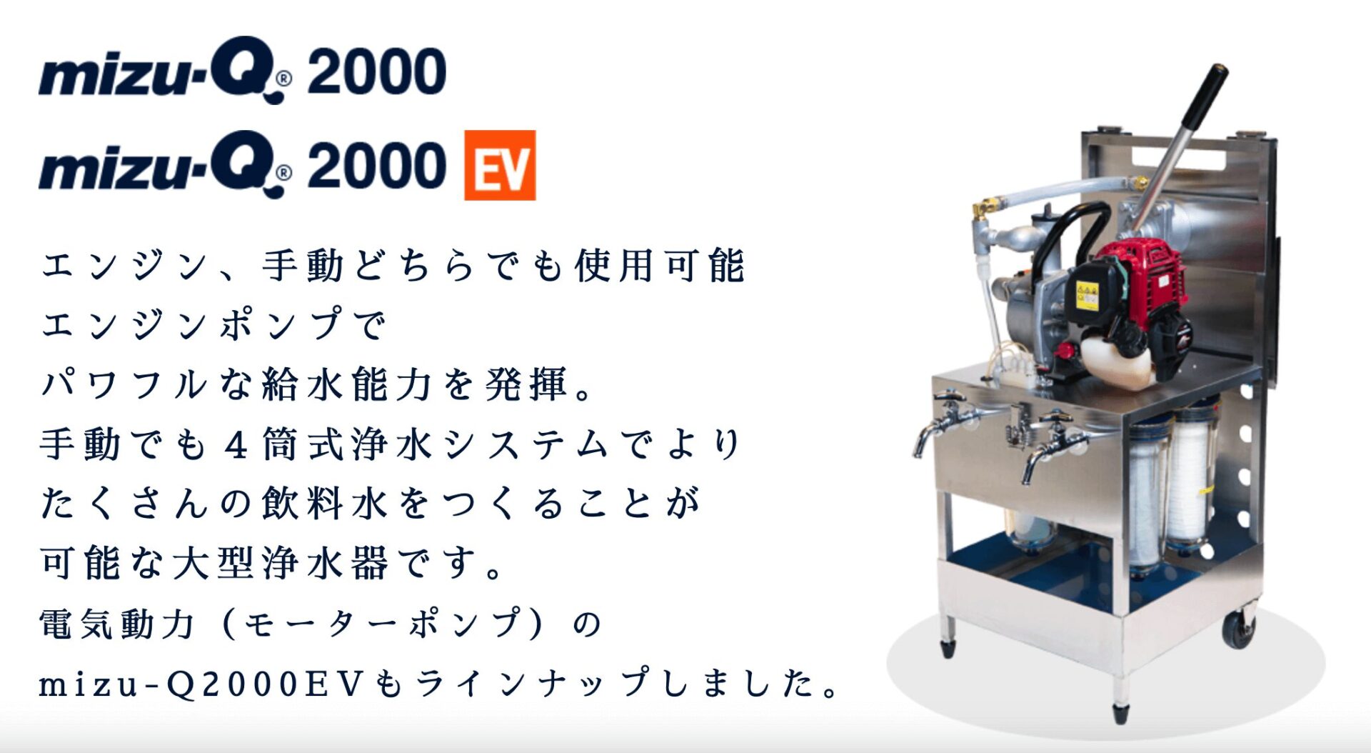 災害用浄水器mizu-Qシリーズは、少人数向けの携帯タイプから、